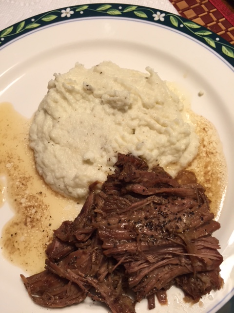 Slow Cooked Pot Roast and creamy cauliflower mashed