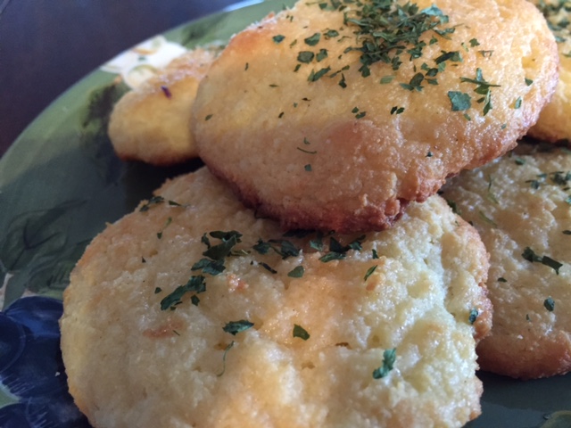 - Preheat oven to 350 degrees F. In a medium bowl, mix dry ingredients. Then add remaining ingredients and mix with a wooden spoon or spatula until well blended. Use medium scoop (3 tbsp.) to scoop out dough onto un-greased cookie sheet lined with parchment paper (or not, see notes above). Space 2-3 inches a part. Bake for 16-20 minutes or until biscuits have slightly browned on the bottoms and tops. Once out of oven, smear a bit of salted butter and sprinkle with a little parsley. Best served warm.